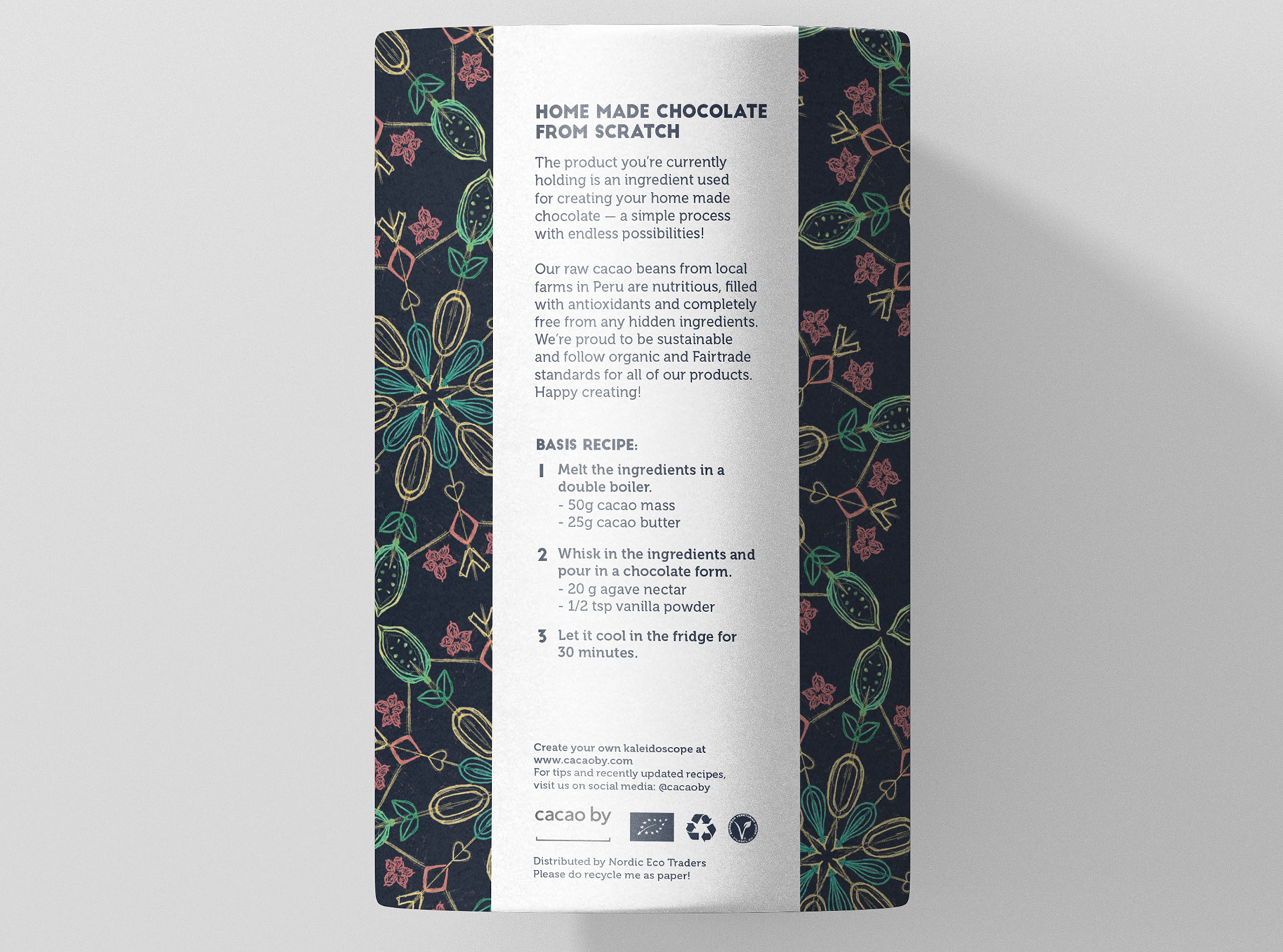 Developed identity, strategy, name and package design for the new brand Cacao by. The project lasted around four months and was commissioned by the Norwegian company Økosjokolade.